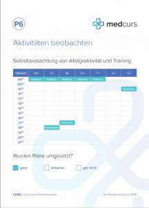 Das CURS Heft erhält jeder Patiententeilnehmer am Ende des ersten Moduls ausgehändigt. Es umfasst ca. 40 Seiten und reflektiert für den Teilnehmer nochmals wesentliche Aspekte der jeweiligen Unterrichtsstunde, insbesondere auch die körperlichen Übungen. Weiterhin enthält es Arbeitsblätter zum Ausfüllen und Vorbereiten.